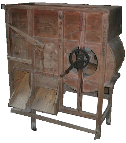 大切な人達との出会い。そして、焼酎へ…。 平成15年、冷夏の影響か9月の天候不順が原因かわかりませんが、そばの花は満開だったにも関わらず、蕎麦の収穫量は昨年比7割減でした。宿で使う分量を確保し、注文頂いた方々へは事情を説明してご希望の約半分の出荷で御了承頂きました(すみません)。 そんな時、JR黒姫駅前にある萬屋酒店の高橋憲さんの紹介で、伴野酒造株式会社の伴野賢一社長と息子の貴之さんにお会い出来ました。今までにも信州佐久で乙類そば焼酎「信濃の仁右衛門」を本数限定で作られていたのですが、手打ち蕎麦の玄蕎麦としても最高級の品質である黒姫高原産の霧下そばを天日で乾燥させた「生産者の顔が見える本物素材」を使っての焼酎作りにご協力頂く事になりました。 今まで、地元の蕎麦処や、クチコミで蕎麦生産の話しを聞かれた都会の蕎麦店の方などへ玄蕎麦を出荷したことがありましたので、焼酎の場合も同じように玄蕎麦(殻付の状態)での納品を予定していたのですが、実際には殻を外した丸抜き(白い粒の状態)で納品し、蒸してから醸造が始まるとの事で、急遽殻を外す機械を探しました。約1トンもの玄蕎麦を磨いてふるいにかけて殻を外すので、小さな石臼では対応しきれず、途方に暮れていたところ、某製粉会社さんにご理解とご協力を頂き、無事丸抜きの蕎麦を納品する事ができました(しかし、当然の事ですが重量にして約3割は減ってしまい、伴野さんにはご無理を申し上げました)。 |